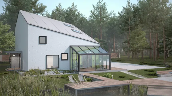 Эксперты отмечают, что переход на одноэтажные дома позволяет сократить расходы на отопление на 25-30% по сравнению с двухэтажными строениями аналогичной площади.Панорамное остекление как способ расширить пространство